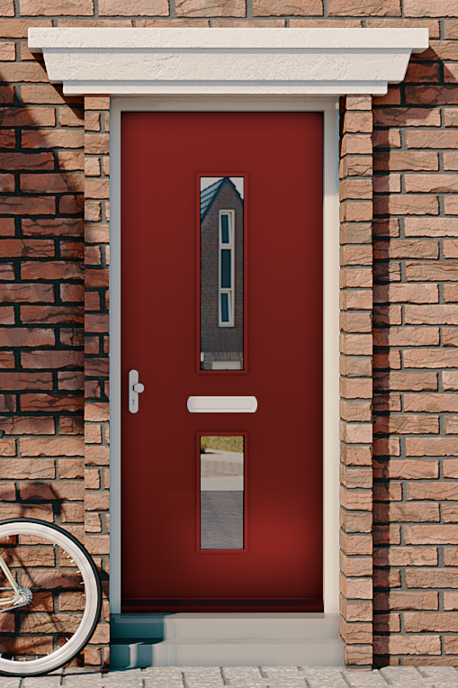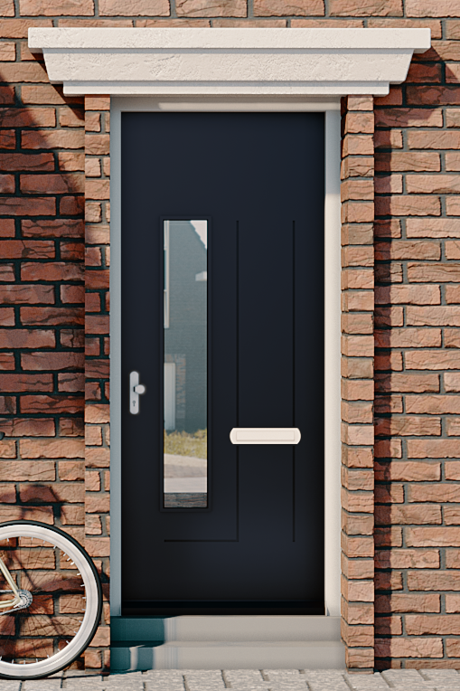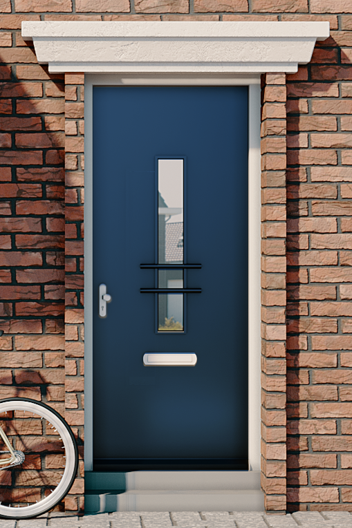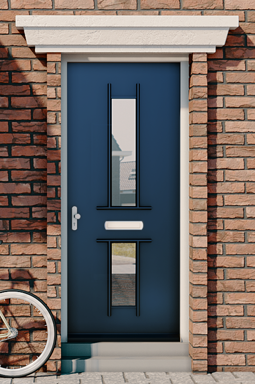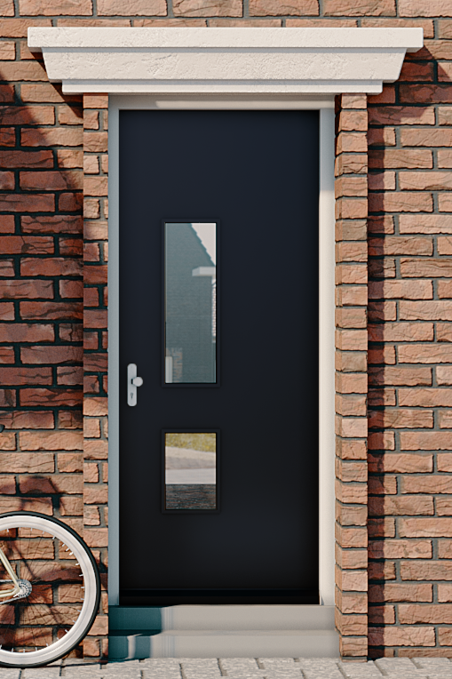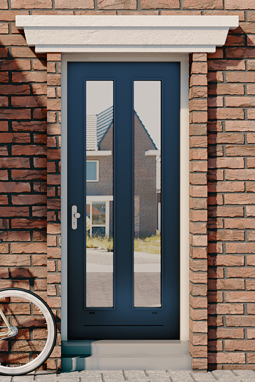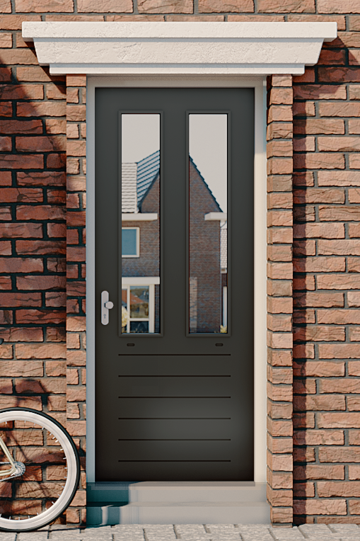 Model 821 is een moderne en stijlvolle voordeur met twee smalle verticale glaspanelen, die zorgen voor een elegante lichtinval en een strakke uitst...
