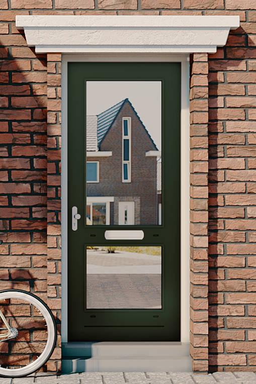 Alle gegevens bekijken606 - Vlakke Voordeur met Twee Verticale Glaspanelen en Sierlijsten