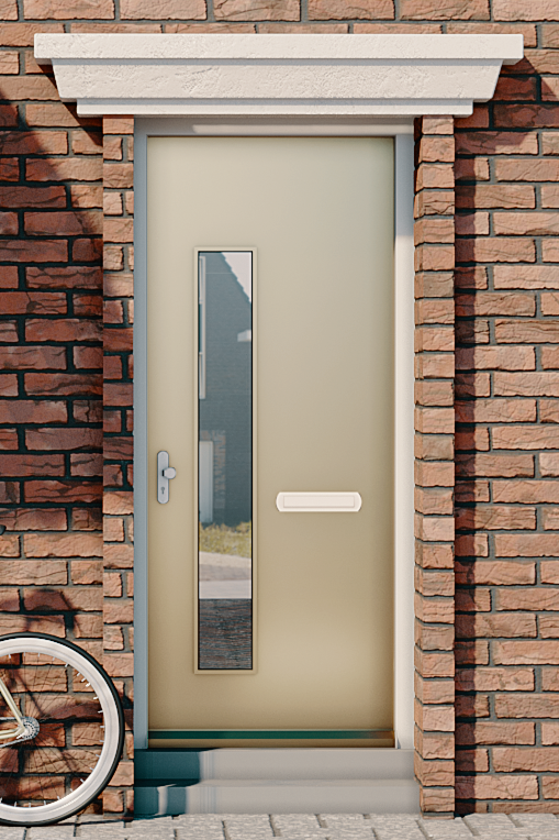 Model 325 biedt een verfijnde balans tussen modern design en functionele esthetiek. Deze vlakke voordeur is voorzien van een stijlvol verticaal gla...